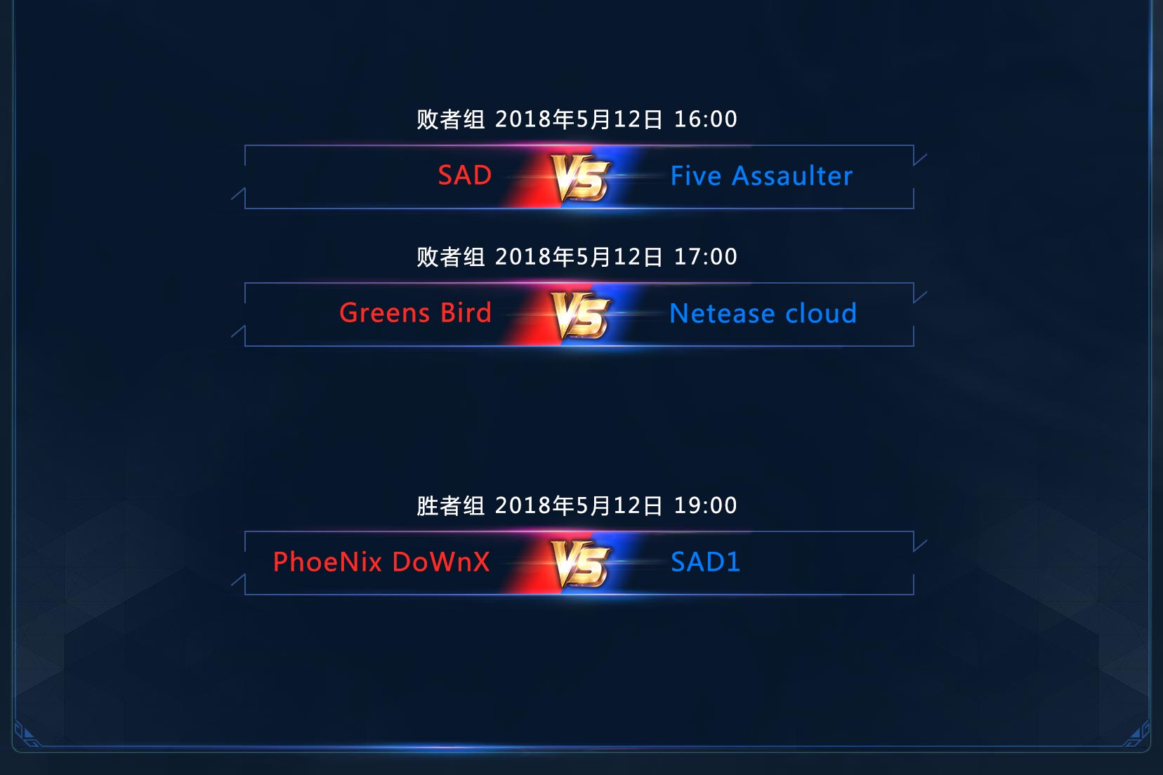 以下为VPL资格赛半决安排: